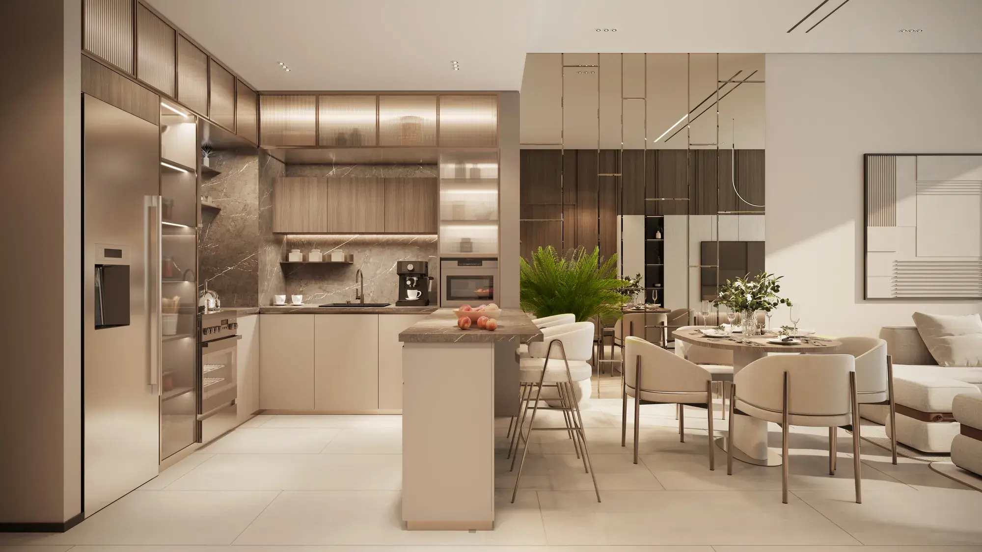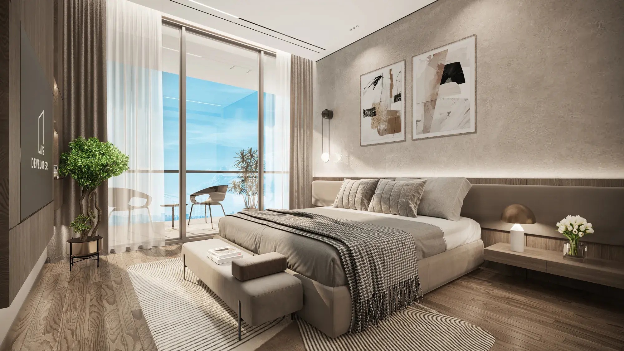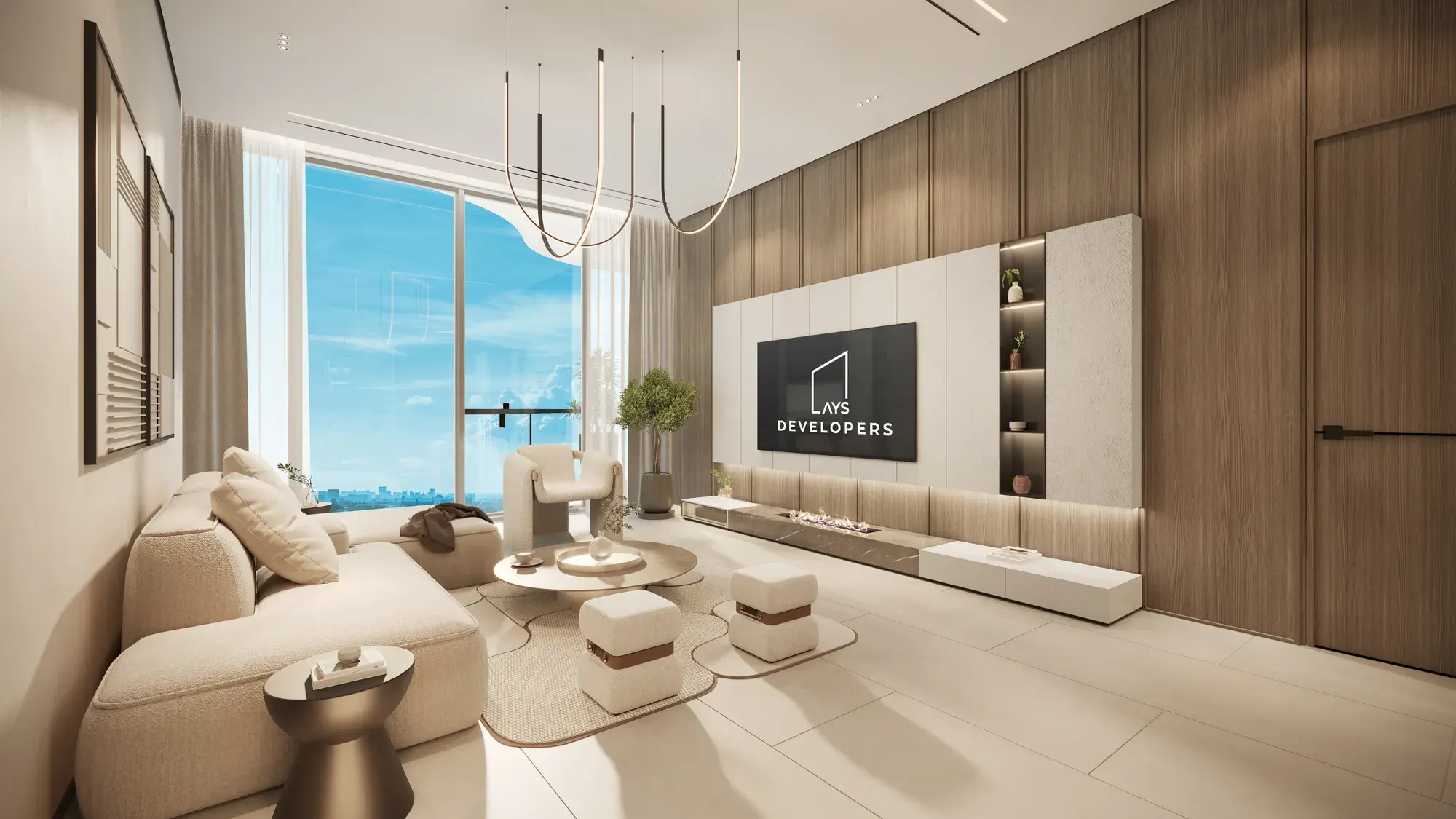 The interiors are crafted with exceptional attention to detail, integrating premium international brands that elevate both aesthetics and functionality. Residences feature a fully integrated Alexa smart-home system, frameless Bertolotto doors, Scavolini kitchens with Italian travertine countertops, Dornbracht sanitary fittings, and high-performance aluminum systems by Gutmann, complemented by luxury furnishings and refined finishing elements. Homes come semi furnished with kitchen appliances from leading global brands, including Bosch, Scavolini, Dornbracht, Legrand, Gutmann and others used across the developer’s portfolio. These elements ensure a sophisticated living environment and a consistent standard of quality throughout all AYS projects.